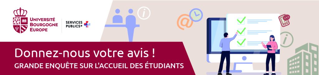Vous êtes étudiant(e)s à l’uB et vous fréquentez nos services (scolarité, etc) ? Participez à l’enquête qualité sur l’accueil des étudiants. Aidez-nous à nous améliorer en donnant votre avis sur l’accueil. Cliquez…