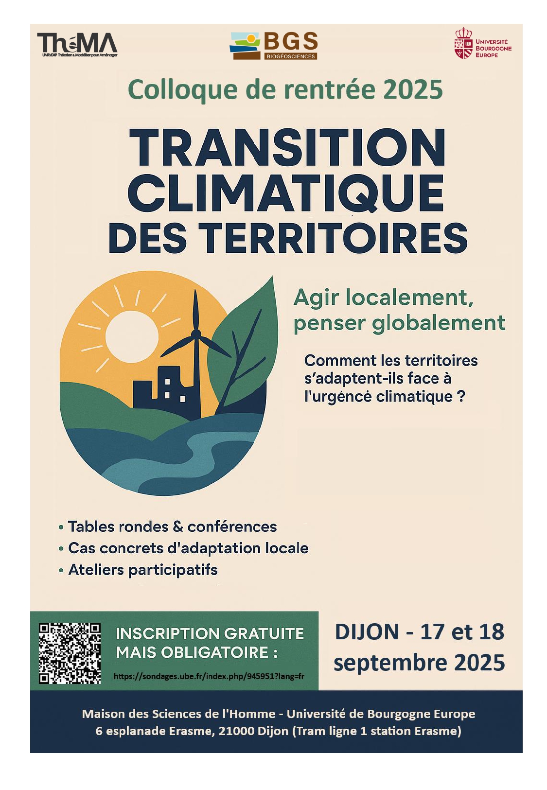 Le thème de cette année est la transition climatique des territoires. Le colloque se déroulera à la MSH les 17 et 18 septembre 2025.