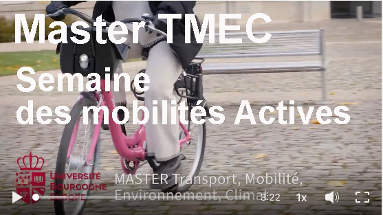Le master TMEC (Transport Mobilité, Environnement, Climat) Le parcours TMEC du master GAED permet d’approfondir les thématiques autour de ces quatre mots-clés. L’objectif principal du master TMEC est de former les étudiants au développement de la mobilité durable afin de réduire les impacts des nuisances associées : artificialisation des espaces, dépendance énergétique, pollutions atmosphérique… Le parcours TMEC a pour ambition de sensibiliser les étudiants à cette double exigence environnementale et sociale pour préparer leur insertion professionnelle. Créé en 2004, le parcours Transport Mobilité Environnement Climat du master est basé à Dijon et permet d’approfondir les thématiques autour de ces quatre mots-clés. L’objectif principal du master TMEC est de former les étudiants au développement de la mobilité durable afin de réduire les impacts des nuisances associées : artificialisation des espaces, dépendance énergétique, pollutions atmosphérique… Le parcours TMEC a pour ambition de sensibiliser les étudiants à cette double exigence environnementale et sociale pour préparer leur insertion professionnelle. Liens :